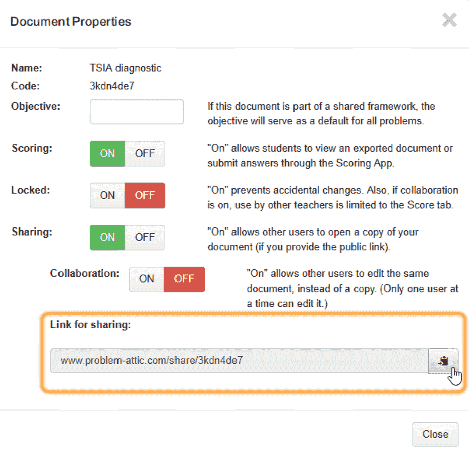 Note: you can also make use of a sharing link that is provided by another Problem-Attic user. The test does not have to be originally created in your account.