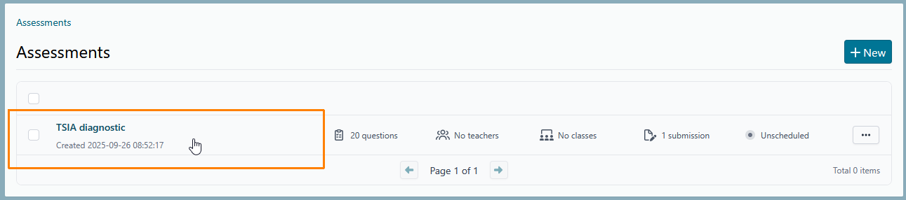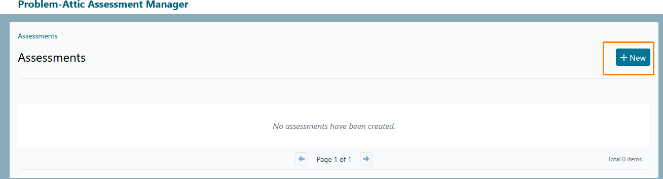 Step 3. At first the list of assessments will be empty. Click the New button.