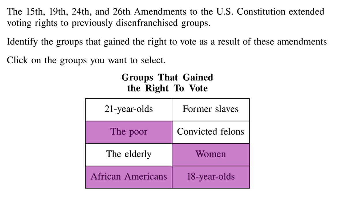 Clickable objects questions can be formatted in three distinct ways. Click on one to jump to its details and step-by-step instructions.